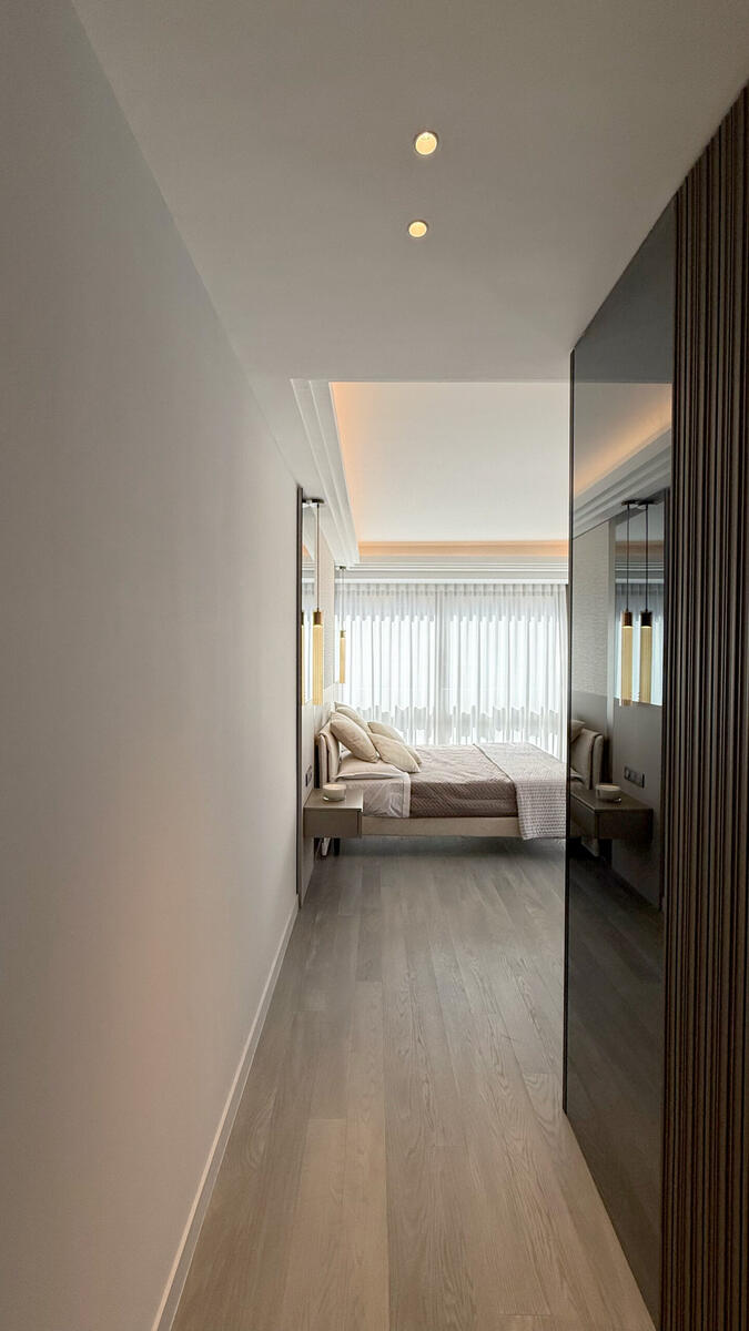 The residence offers premium amenities, including 24/7 concierge service, an indoor swimming pool, sauna, and fitness room.